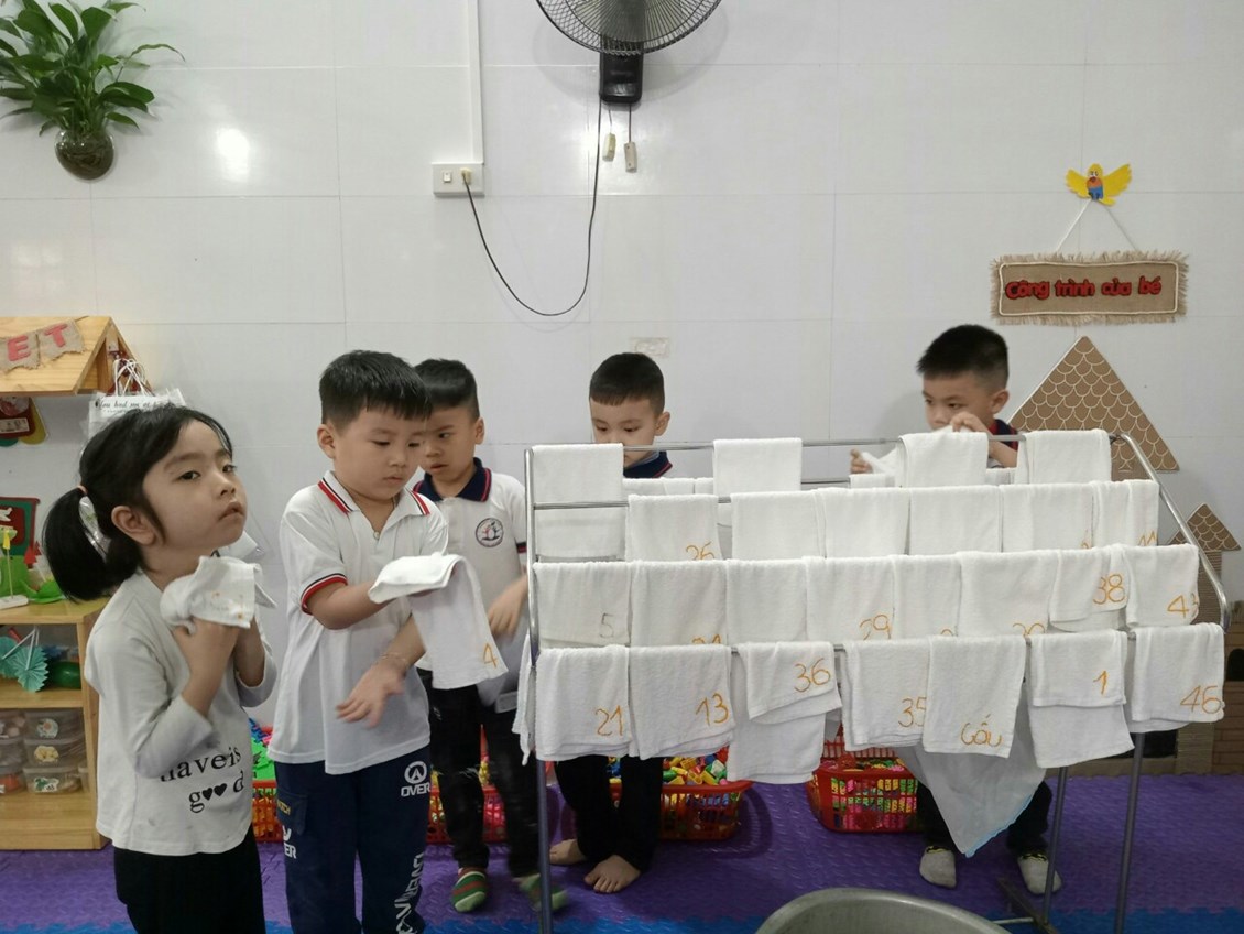 Trẻ cất bát thìa gọn gàng đúng nơi quy định, đánh răng, xúc miệng nước muối, lấy khăn lau miệng và đi vệ sinh khi trẻ có nhu cầu. Khuyến khích trẻ lao động lau dọn bàn, cất ghế, cho trẻ chơi nhẹ nhàng 15-20 phút trước khi bước vào giờ ngủ.