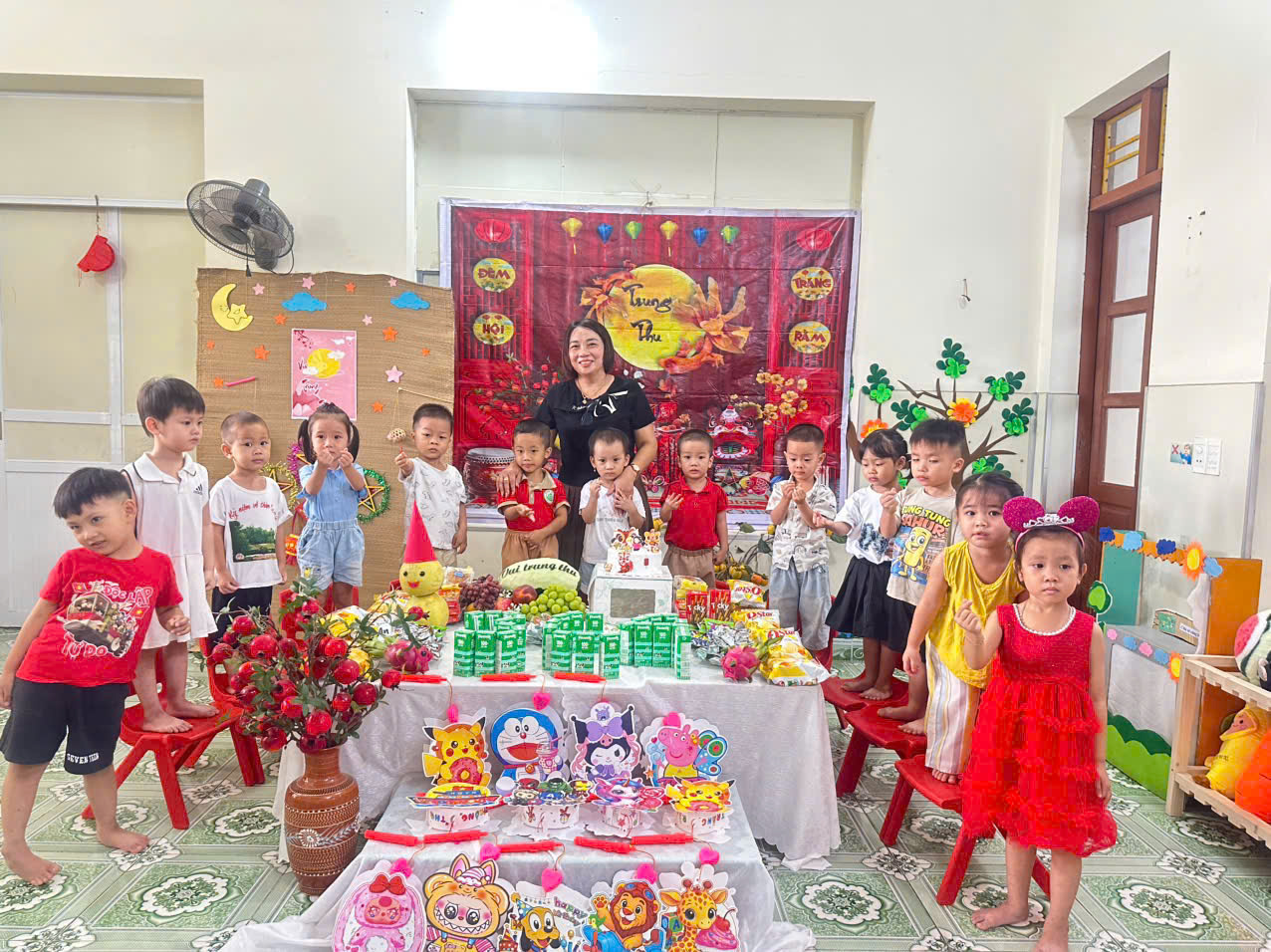 cô giáo tổ chức hội trăng rằm cho các bé thật linh đình. Với mong muốn