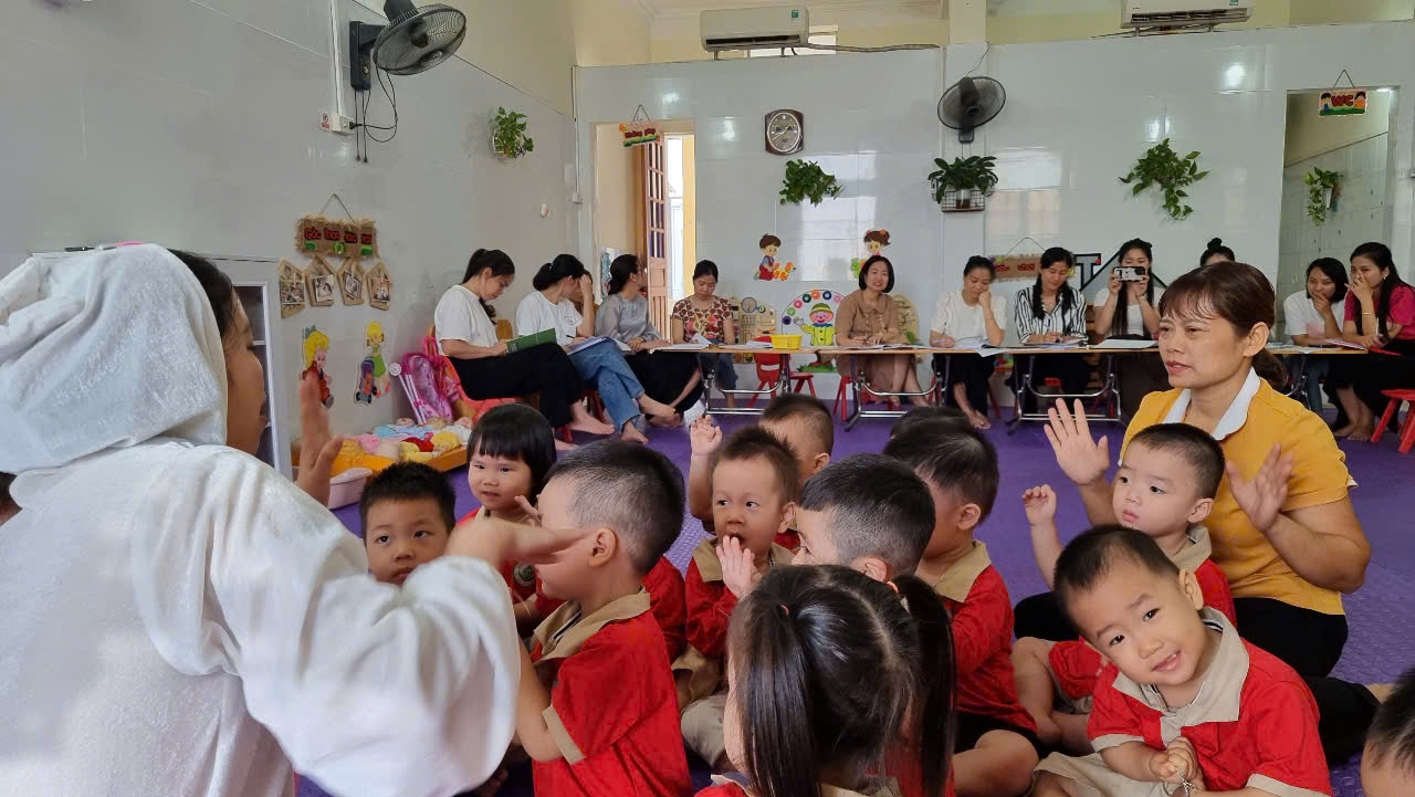 Sau các hoạt động, cán bộ, giáo viên nhà trường đã cùng nhau trao đổi, thảo luận, chia sẻ ý kiến về kết quả hoạt động. Những điểm mạnh như sự chuẩn bị đồ dùng chu đáo, xây dựng môi trường giáo dục phong phú, kích thích trẻ tích cực tham gia hoạt động và cách ứng dụng linh hoạt quan điểm lấy trẻ làm trung tâm trong tổ chức các hoạt động giáo dục tại lớp NTS1 được ghi nhận.