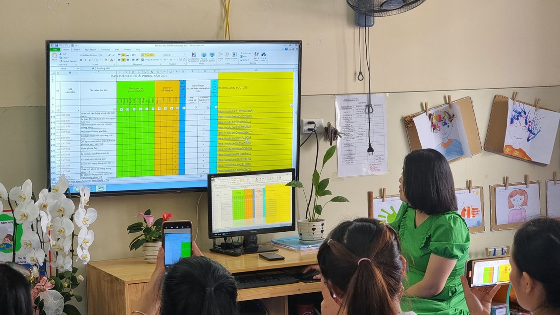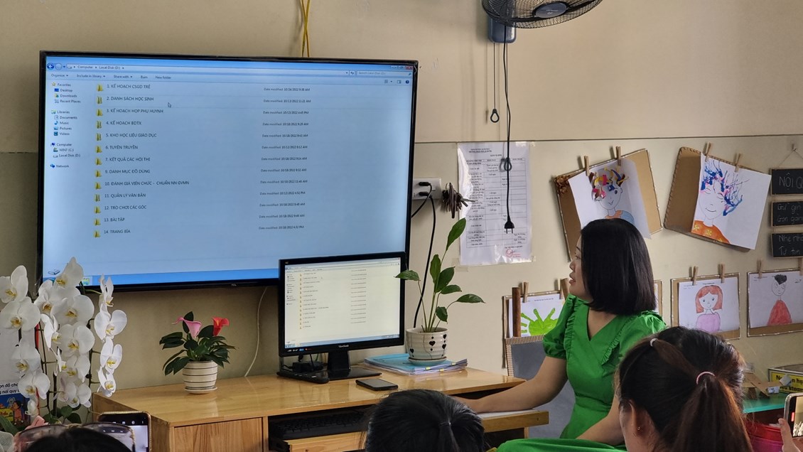 Tại đây các đồng chí Cán bộ quản lý - giáo viên được nghe cô giáo Trương Thị Phương Thảo - Giáo viên chủ nhiệm lớp 5A5 đã chia sẻ về cách quản lý, sắp xếp và lưu trữ các file dữ liệu trên máy tính một cách khoa học theo từng mảng nội dung công việc. Đặc biệt là cách sáng tạo khi lưu trữ các video học liệu giáo dục dưới dạng đường link để thuận tiện khi tìm kiếm, sử dụng.