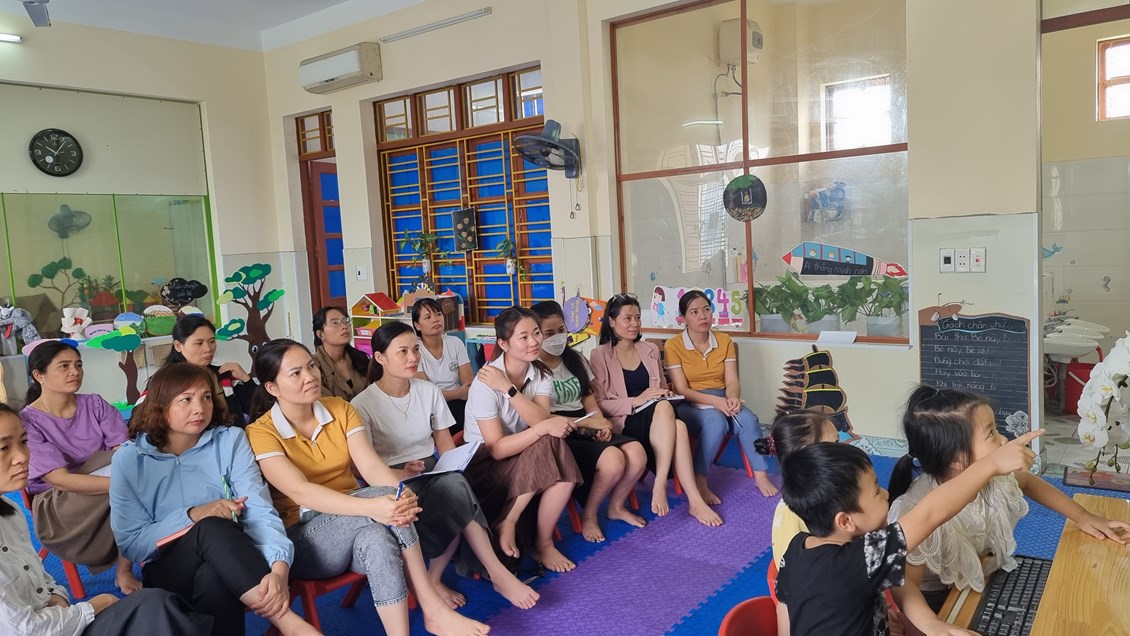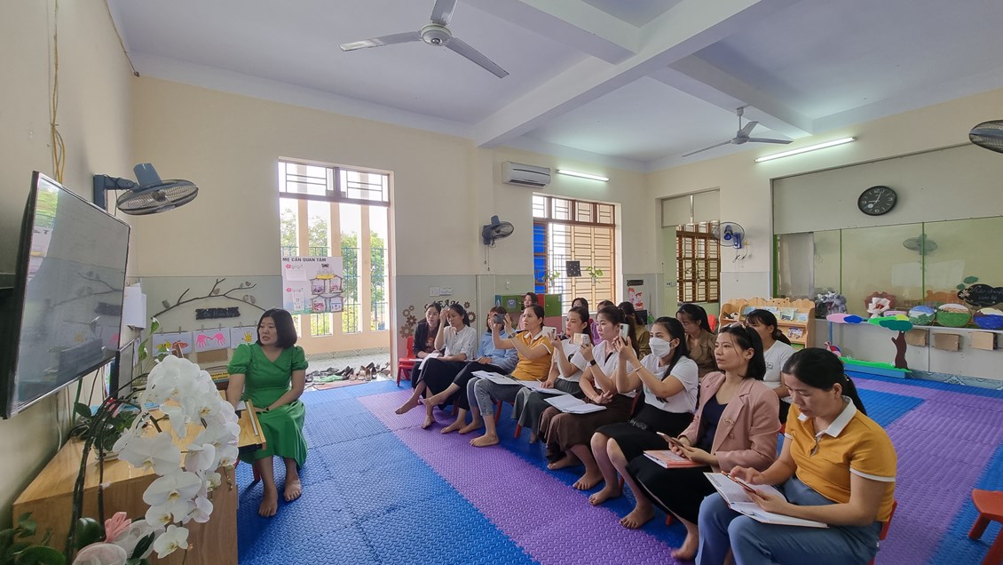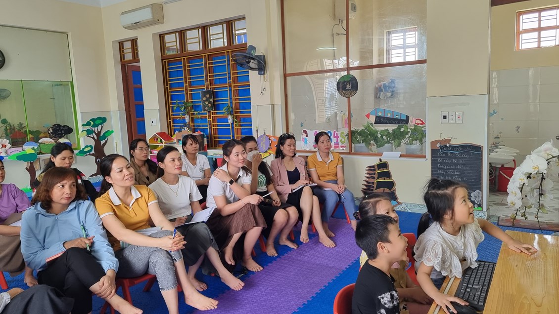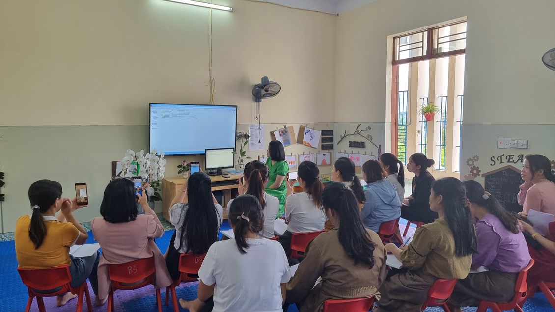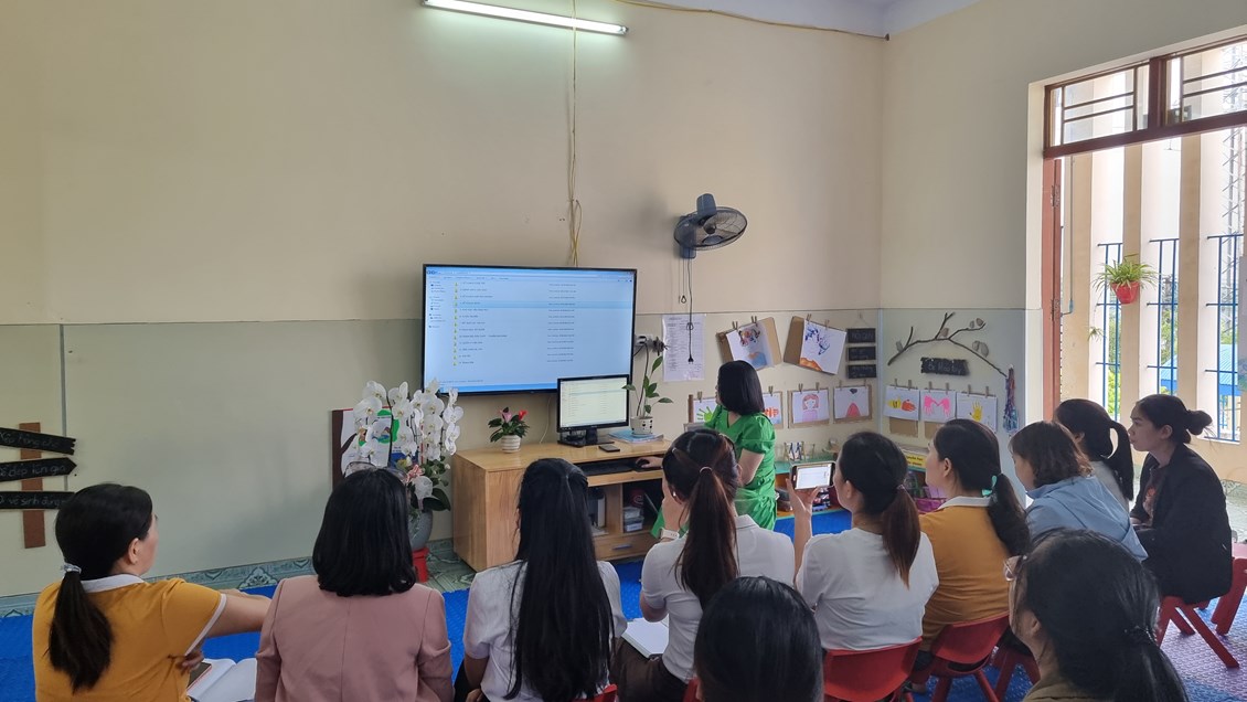 Tại buổi Hội thảo các đ/c giáo viên tham dự đã mạnh dạn trao đổi, chia sẻ về cách lưu trữ, quản lý tài liệu, hồ sơ sổ sách trên máy tính một cách khoa học, và cách khai thác các trò chơi, bài giảng để tạo góc làm quen máy tính cho trẻ qua đó rút ra được những kinh nghiệm trong công tác ứng dụng CNTT, chuyển đổi số trong các hoạt động của nhà trường.