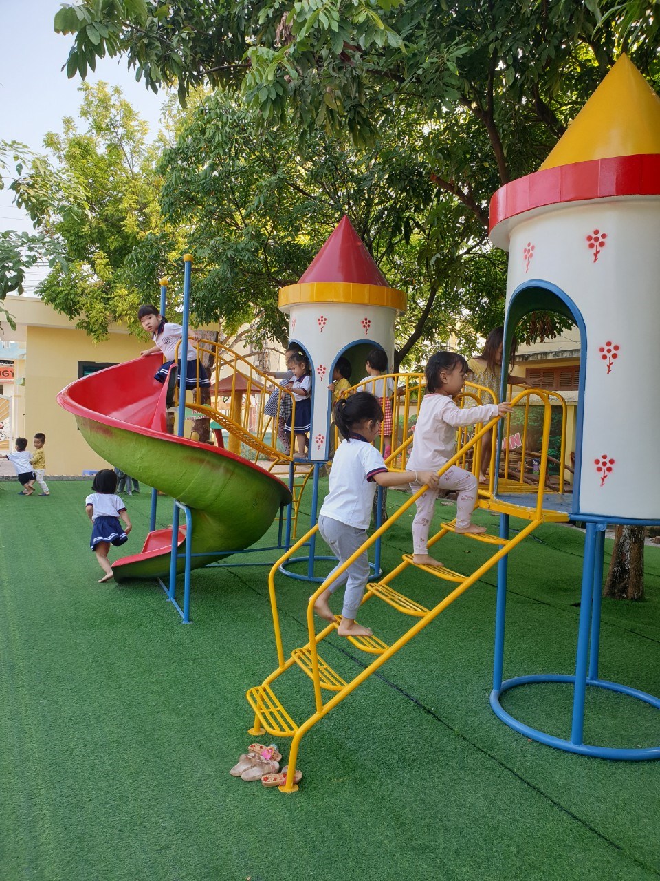 Các bé chơi cầu trượt