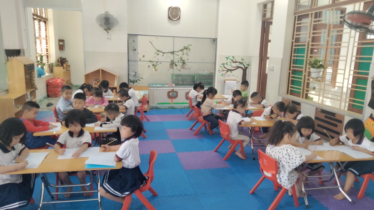 Năm học 2022-2023 trường mầm non An Hưng đưa nội dung cho trẻ tập tô nét cơ bản vào chương trình học của trẻ 4-5 tuổi nhằm rèn luyện kỹ năng vận động tinh, tư thế ngồi, tư thế cầm bút cũng như giúp trẻ nhận biết được hướng tô, viết các nét cơ bản qua đó tạo tiền đề cho trẻ 5-6 tuổi tập tô chữ cái, chuẩn bị sẵn sàng tâm thế cho trẻ vào lớp 1.
