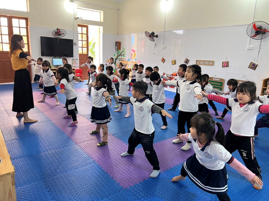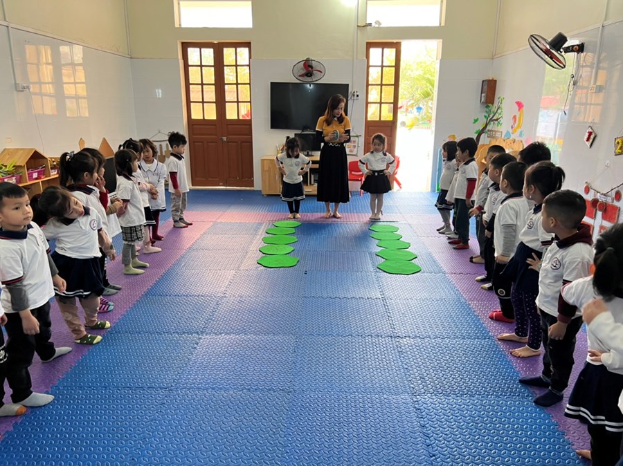 Tập thể dục đóng một vai trò quan trọng trong việc xây dựng và duy trì cơ bắp và xương chắc khỏe cho cơ thể con người . Chính vì vậy trong chương trình giáo dục mầm non đã triển khai và xây dựng kế hoạch 1 tiết thể dục vận động cơ bản trên tuần nhằm thúc đẩy sự kiên trì, rèn luyện sự khéo léo, tính bền bỉ sự dẻo giai cho trẻ ngay từ khi còn nhỏ. Với giờ vận động cơ bản “ Bật liên tục qua 5 ô vòng” trẻ rất tích cực hứng thú tham gia hoạt động và từng bước thực hiện theo tiến trình bài dạy do cô giáo tổ chức. Trẻ được thực hành, trải nghiệm, quan sát một cách chủ động, từ đó kích thích trẻ chăm tập thể dục, yêu thích môn thể dục, ngoài ra còn giúp trẻ hiểu được tầm quan trọng của việc tập thể dục đối với sức khoẻ con người.