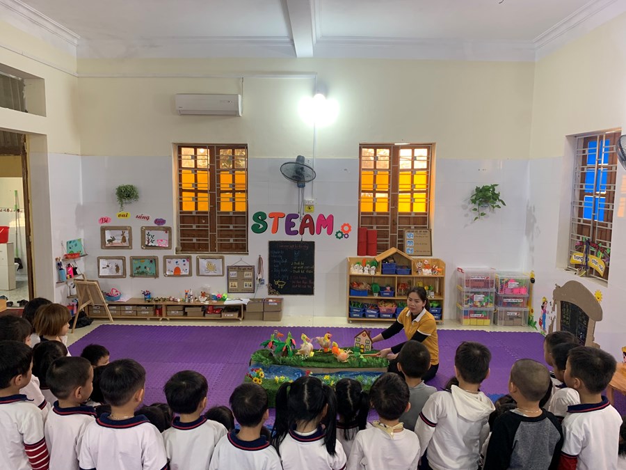 Cô giáo đang kể chuyện cho các nghe