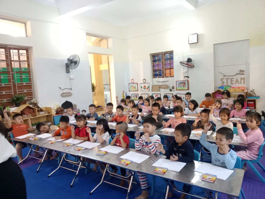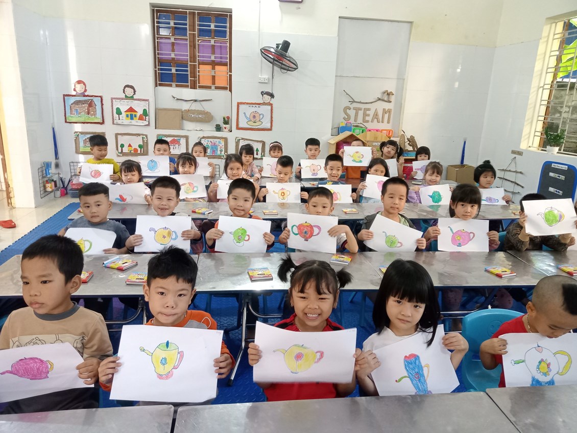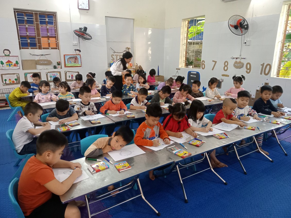 Các con rất chăm chú, say sưa vẽ, cô giáo động viên, giúp đỡ trẻ kịp thời!