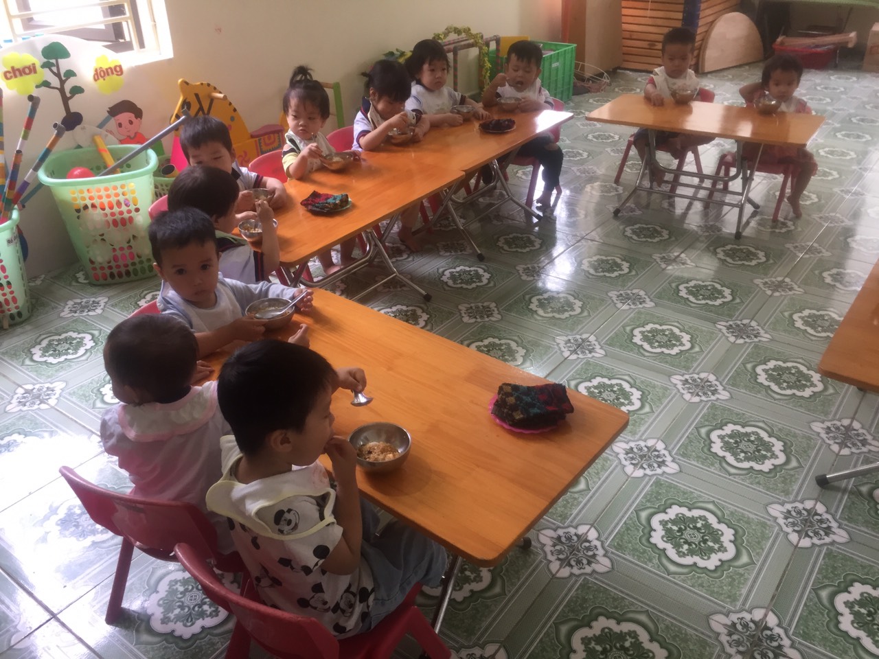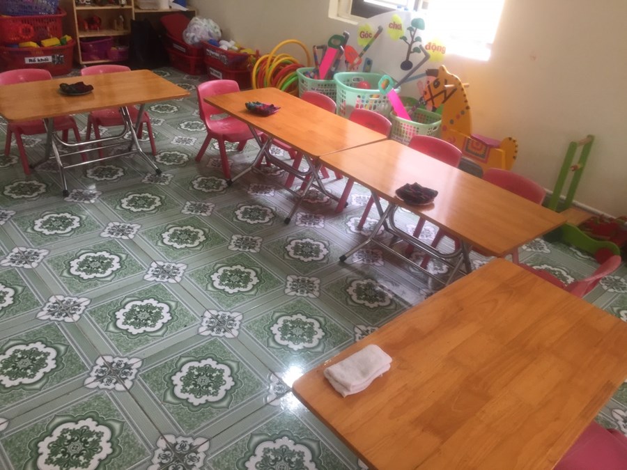 Cô đã chuẩn bị bàn ghế cho chúng mình ngồi ăn rồi này