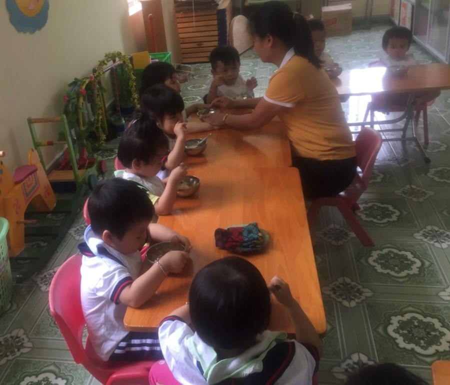 Cô đang xúc cơm cho chúng tớ này