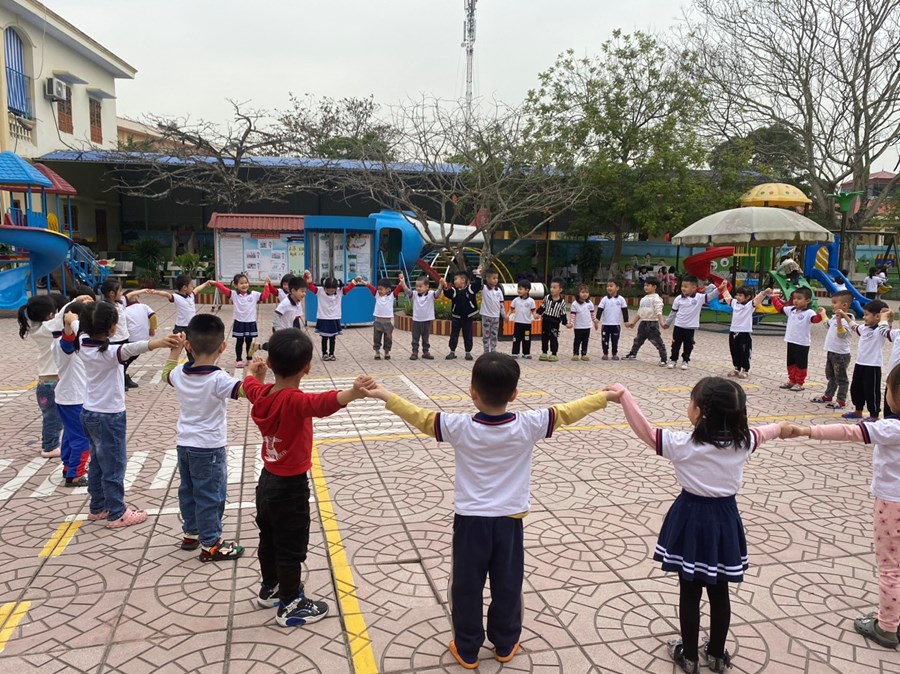 Dưới đây là một số hình ảnh trẻ hoạt động ngoài trời của các bé trường mầm non An Hưng: