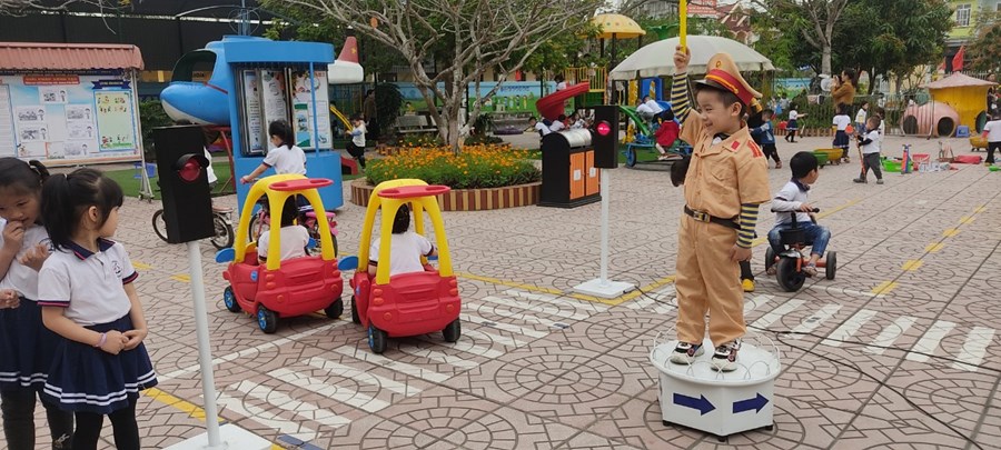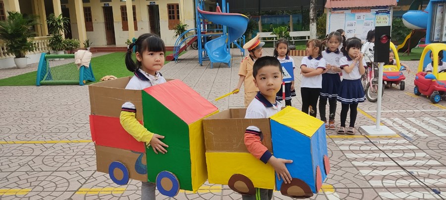 Tại trường mầm non An Hưng, mỗi lớp học ở khu trung tâm cũng như khu Đồng Hải đều có lịch hoạt động ngoài trời mỗi ngày. Tại khuôn viên mỗi khu trường tập thể cán bộ giáo viên trong trường luôn tích cực phối hợp với cha mẹ học sinh để xây dựng cải tạo môi trường, trồng cây, các loại hoa, cây cảnh, xây dựng các khu vực chơi như chợ quê, khu vui chơi vận động, góc sách, góc STEAM, góc An toàn giao thông, vườn rau của bé... sáng tạo, tự chế ra những đồ chơi mới từ vật dụng bỏ đi như lon sữa, chai lọ, ống hút…để làm đa dạng và phong phú thêm môi trường hoạt động ngoài trời cho trẻ, để trẻ có cơ hội được khám phá, trải nghiệm khi tham gia vào hoạt động.