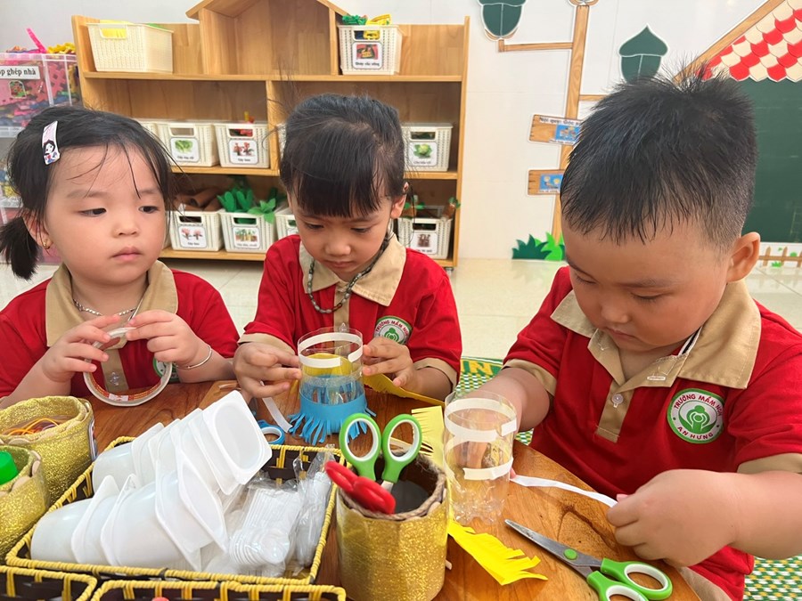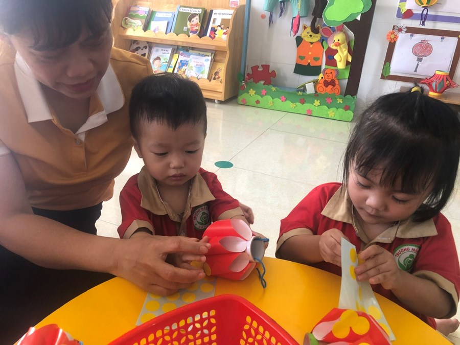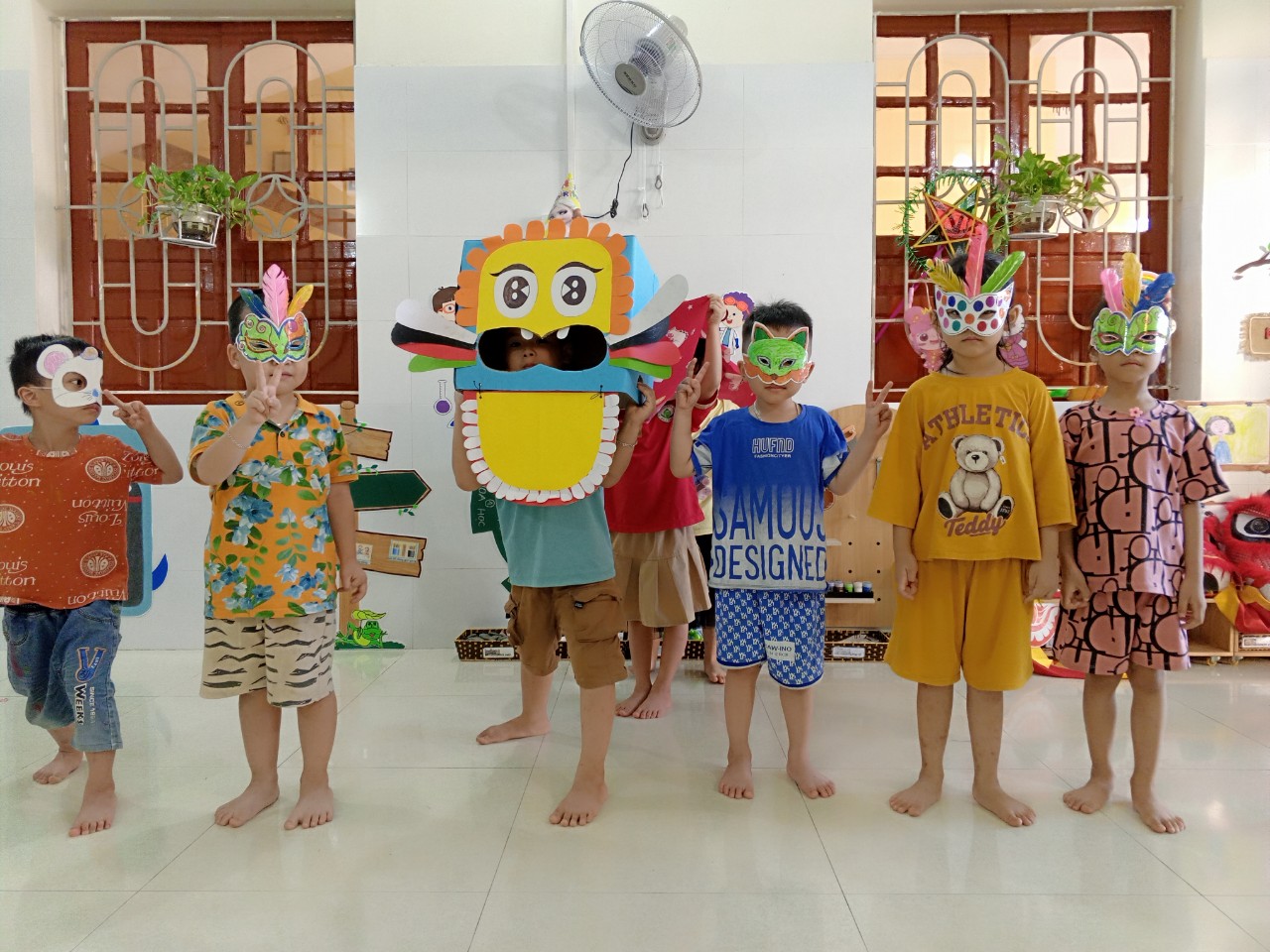 Từ những chiềc lõi giấy, giấy màu, thùng carton bằng đôi bàn tay nhỏ bé, khéo léo cùng với sự hướng dẫn của cô, các bạn nhỏ trường mầm non An Hưng đã trang trí tạo nên những chiếc lồng đèn, mặt nạ, đầu kì lân thật xinh xắn và ngộ nghĩnh phải không nào ba mẹ.
