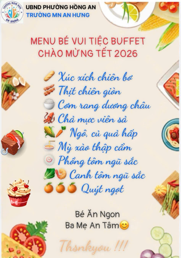 Trong không khí hân hoan chào đón năm mới 2026, một năm mới trần đầy hy vọng và thàng công! Để góp phần nâng cao chất lượng chăm sóc nuôi dưỡng trẻ; trường Mầm non An Hưng đã tổ chức buổi tiệc Buffet với chủ đề “Chào mừng năm 2026” ngày 31/12/2025; buổi liên hoan mang đến cho các bé một hoạt động trải nghiệm ý nghĩa, vui tươi và giàu tính giáo dục.