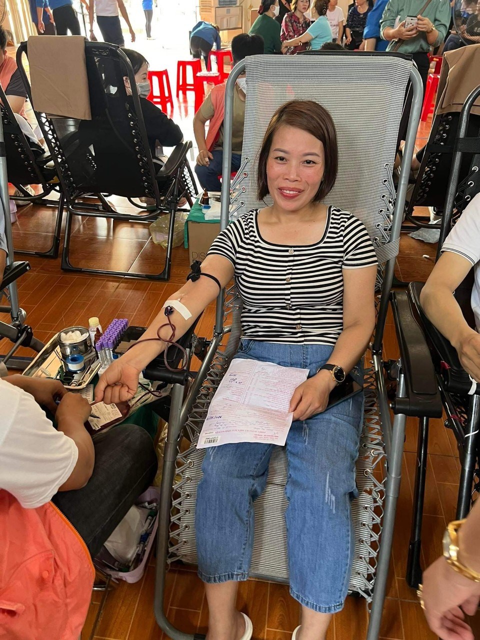 Đ/c Trịnh Thị Thanh Huệ chuẩn bị hiến máu