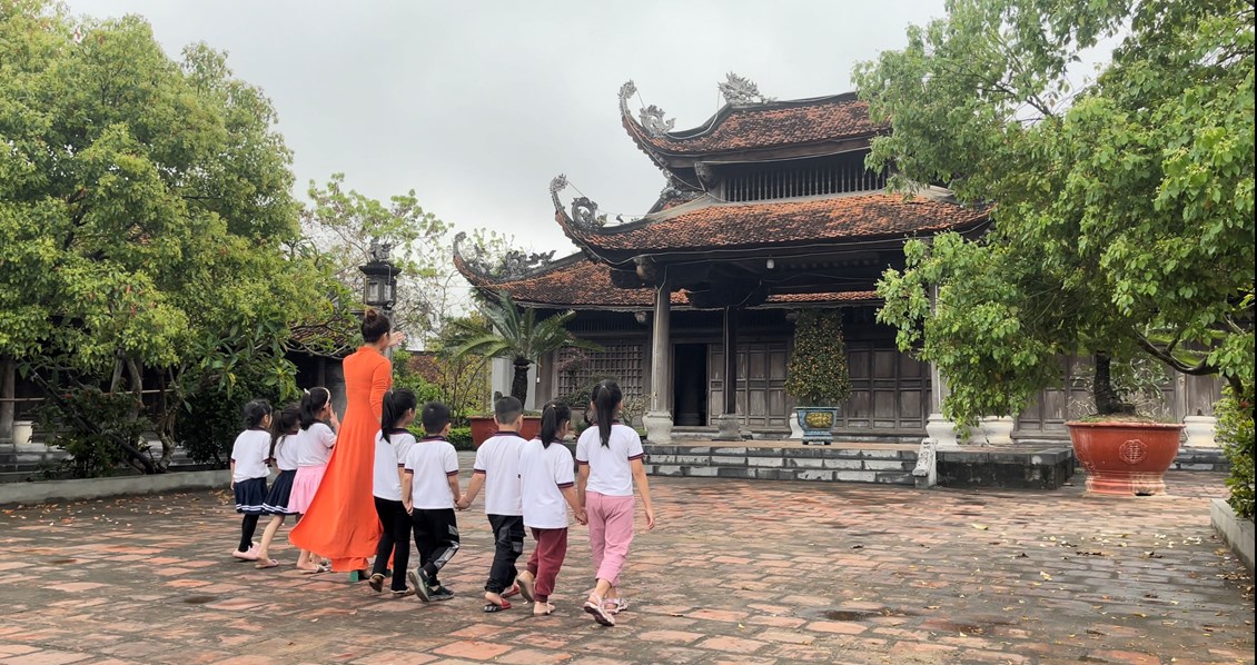 Thực hiện Kế hoạch số 05/KH/PH ngày 01/03/2023 của Đoàn thanh niên - Hội liên hiệp thanh niên Việt Nam xã An Hưng về tổ chức cuộc thi Video clip "Tự hào quê hương An Hưng" năm 2023 nhằm hướng tới các hoạt động kỷ niệm 92 năm ngày thành lập Đoàn TNCS Hồ Chí Minh (26/03/1931-26/03/2023). Trường mầm non An Hưng tổ chức cho các cháu 5 tuổi tham quan tại khu di tích lịch sử đình Khinh Giao nhằm giúp các bé hiểu biết thêm về nét đẹp văn hóa của di tích lịch sử làng quê An Hưng, giáo dục cho các con tình yêu và lòng tự hào về dân tộc, quê hương, đất nước… Từ đó giúp trẻ bước đầu có nhận thức đúng đắn về việc giữ gìn và bảo vệ quê hương, làng xóm, luôn biết yêu thương và giúp đỡ những người xung quanh.
