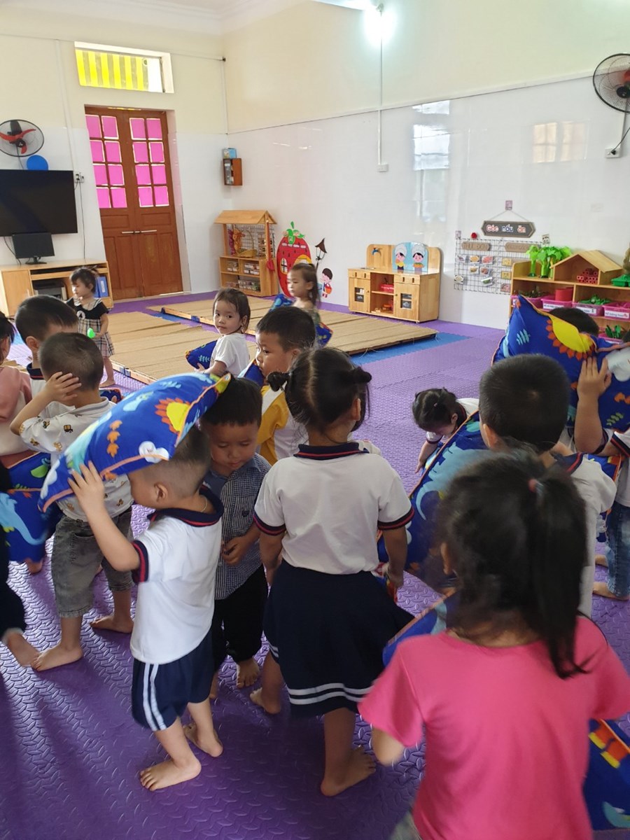 Sau giờ ngủ trưa: Cô bật điện phòng ngủ để trẻ dậy, sau khi trẻ dậy cho trẻ giúp cô cất gối.