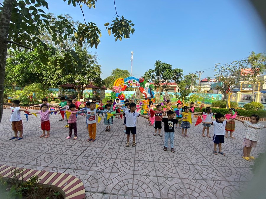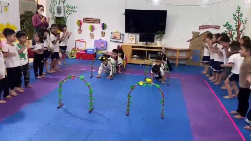 Các bài vận động thường được giáo viên xây dựng phù hợp với từng độ tuổi của trẻ và được phân nhóm vận động như: vân động tinh, vận động thô, nhóm trườn, trèo, bật, ném… nhằm thu hút trẻ. Các bài tập vận động vừa sức giúp cơ thể trẻ thoải mái, kích thích hoạt động của các hệ cơ quan bên trong như hệ tuần hoàn, hệ thần kinh, hệ hô hấp, hệ tiêu hóa... Đặc biệt, khi trẻ luyện tập với các yếu tố tự nhiên như ánh nắng mặt trời, nước, không khí... giúp trẻ thích nghi tốt hơn với môi trường sống bên ngoài, tăng cường sức đề kháng của cơ thể.