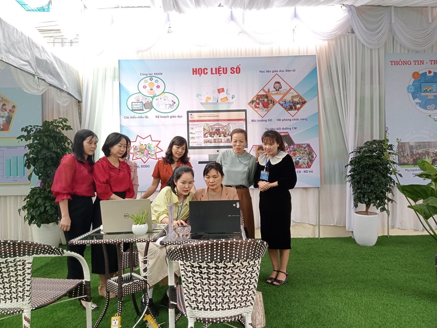 Tham gia tại khu trải nghiệm "Kho học liệu số" CBQL-GV trường mầm non An Hưng chia sẻ tới các bạn đồng nghiệp cách khai thác hiệu quả trang Website và xây dựng kho học liệu giáo dục dùng chung trong các trường mầm non. Sau đây là một số hình ảnh của buổi Hội thảo chuyên đề: