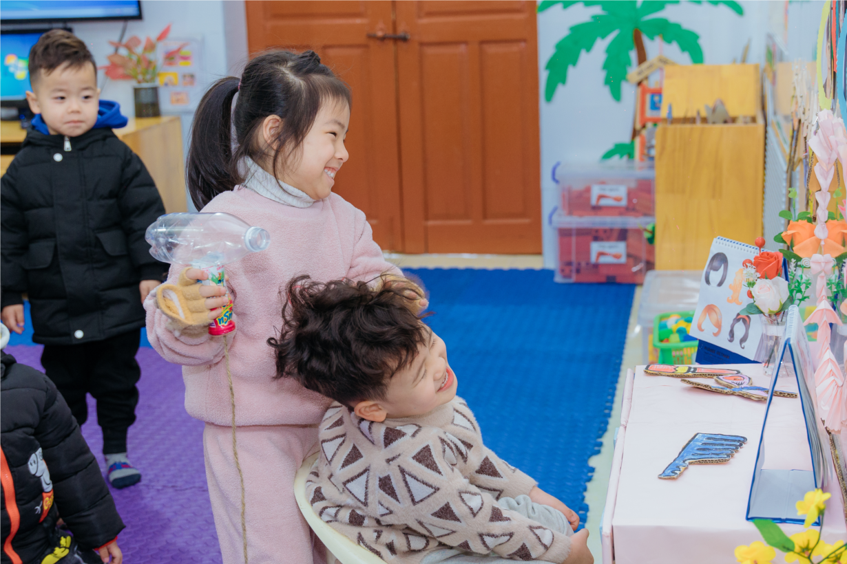 Tại ngày hội, trẻ được đi tham quan từng khu vực để lựa chọn cho mình những góc chơi, trò chơi trẻ yêu thích. Trẻ được thoả sức sáng tạo, tưởng tượng, thể hiện những đam mê của mình ở những ngành nghề khác nhau như: Spa kids; trạm cứu hoả, Doanh trại quân đội, Tiệm may Cô Ba; Tiệm giặt là, Nông trại vui vẻ, Xưởng gốm; Xưởng bánh;..... Bên cạnh đó trẻ được tham gia trò chơi phát huy trí tưởng tượng, óc sáng tạo như: làm tranh thủy ấn, sáng tạo tranh từ đất nặn, làm gốm, làm tò he,…Trẻ được cùng cô tham gia vào các thí nghiệm khoa học giúp trẻ có cơ hội trải nghiệm, khám phá những điều kỳ diệu trong cuộc sống như: làm các thí nghiệm núi lửa phun trào, cốc nước cầu vồng, những hạt gạo nhảy múa...Mỗi góc chơi, khu vực chơi đều tạo cho trẻ những hứng thú mới, những cảm giác mới và những mong muốn được khám phá khác nhau tạo cơ hội cho trẻ được thỏa sức sáng tạo, thực hành, rèn luyện sự bền bỉ, ghi nhớ và phát huy khả năng cá nhân của từng trẻ.
