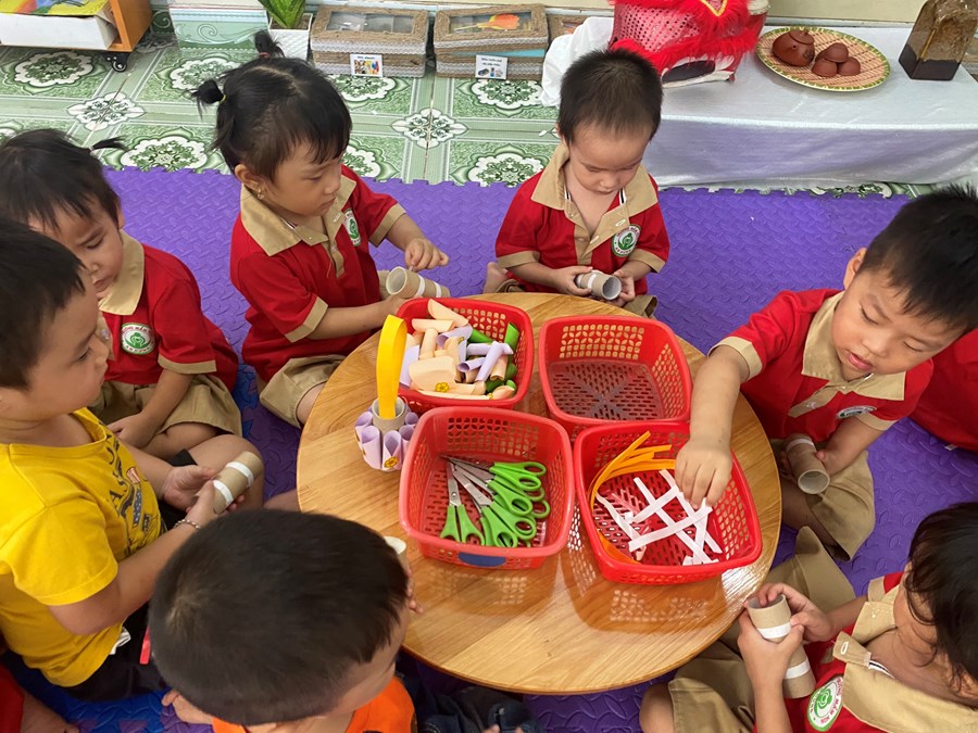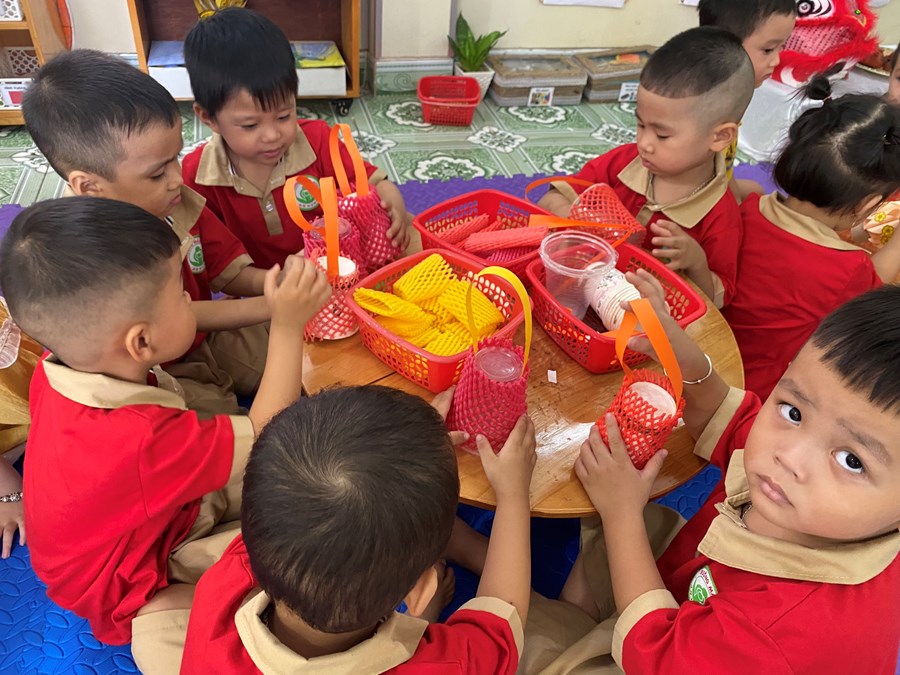 Trong không khí Trung thu đang rộn ràng, tại nhóm trẻ Mầm non An Hưng các em hào hứng tận mắt nhìn cô giáo hướng dẫn và tự tay làm những chiếc lồng đèn, xinh xắn . Những hoạt động này mang đến những trải nghiệm về Tết trung thu cũng như rèn kỹ năng khéo léo, kiên trì cho trẻ.