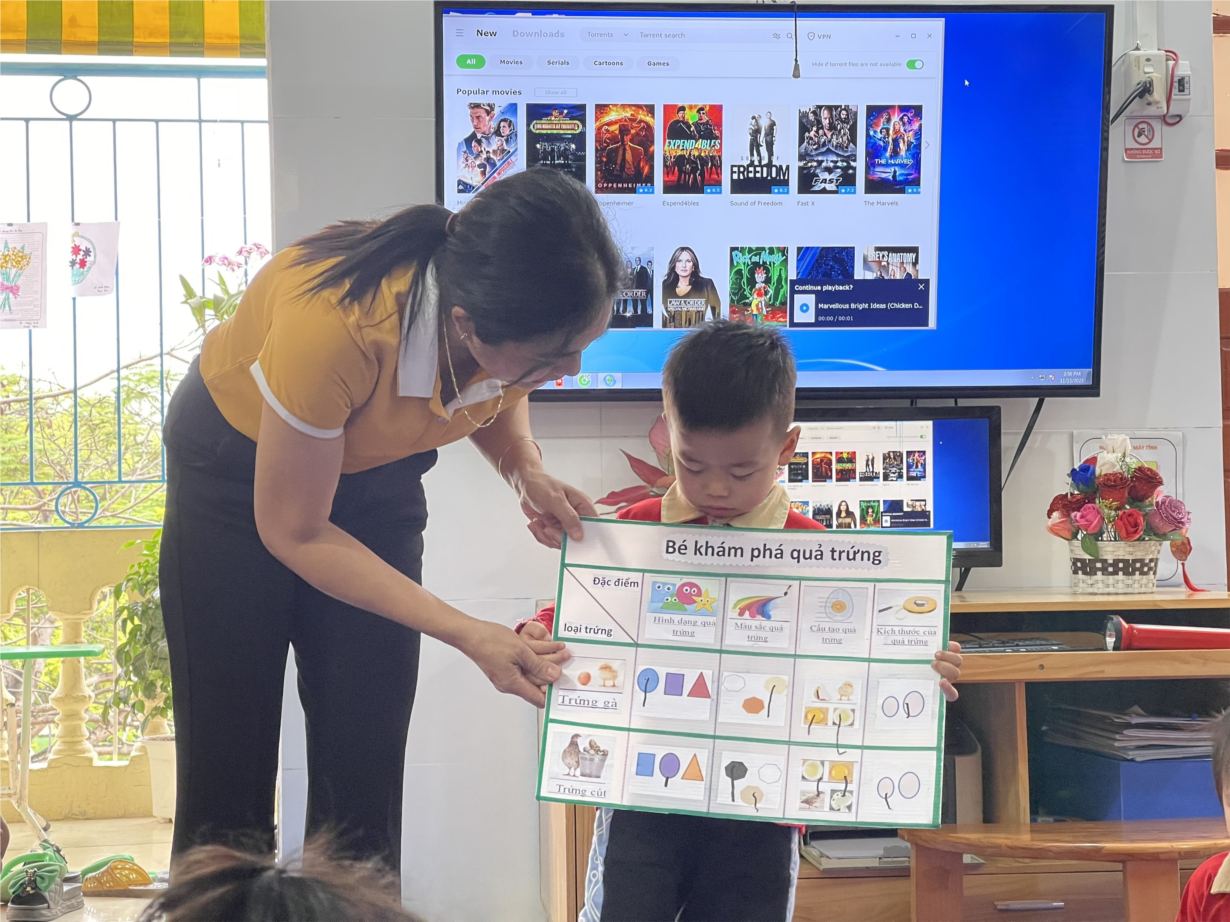 Trứng là một loại thực phẩm vô cùng quen thuộc trong cuộc sống hàng ngày, nhưng đối với trẻ thì khám phá về quả trứng lại giúp bé tìm hiểu được nhiều điều mới lạ và bổ ích. Có rất nhiều loại trứng khác nhau như là trứng gà, trứng vịt, trứng chim cút. Thật là thú vị khi các con được sờ, được cầm, được ngửi, được bóc vỏ trứng, được quan sát lòng trắng, lòng đỏ của quả trứng và thưởng thức món trứng luộc…Bạn nào cũng rất hào hứng! Bên cạnh đó, các con còn được sáng tạo trải nghiệm qua thí nghiệm "trứng nổi trứng chìm", thông qua các hoạt động trải nghiệm, trẻ được cung cấp kiến thức, kỹ năng. Hoạt động trải nghiệm khiến trẻ sử dụng tổng hợp các giác quan: nghe, nhìn, chạm, ngửi…Xin mời ba mẹ cùng xem lại một số hình ảnh của các con lớp 3 tuổi C1 trong hoạt động khám phá này nhé.