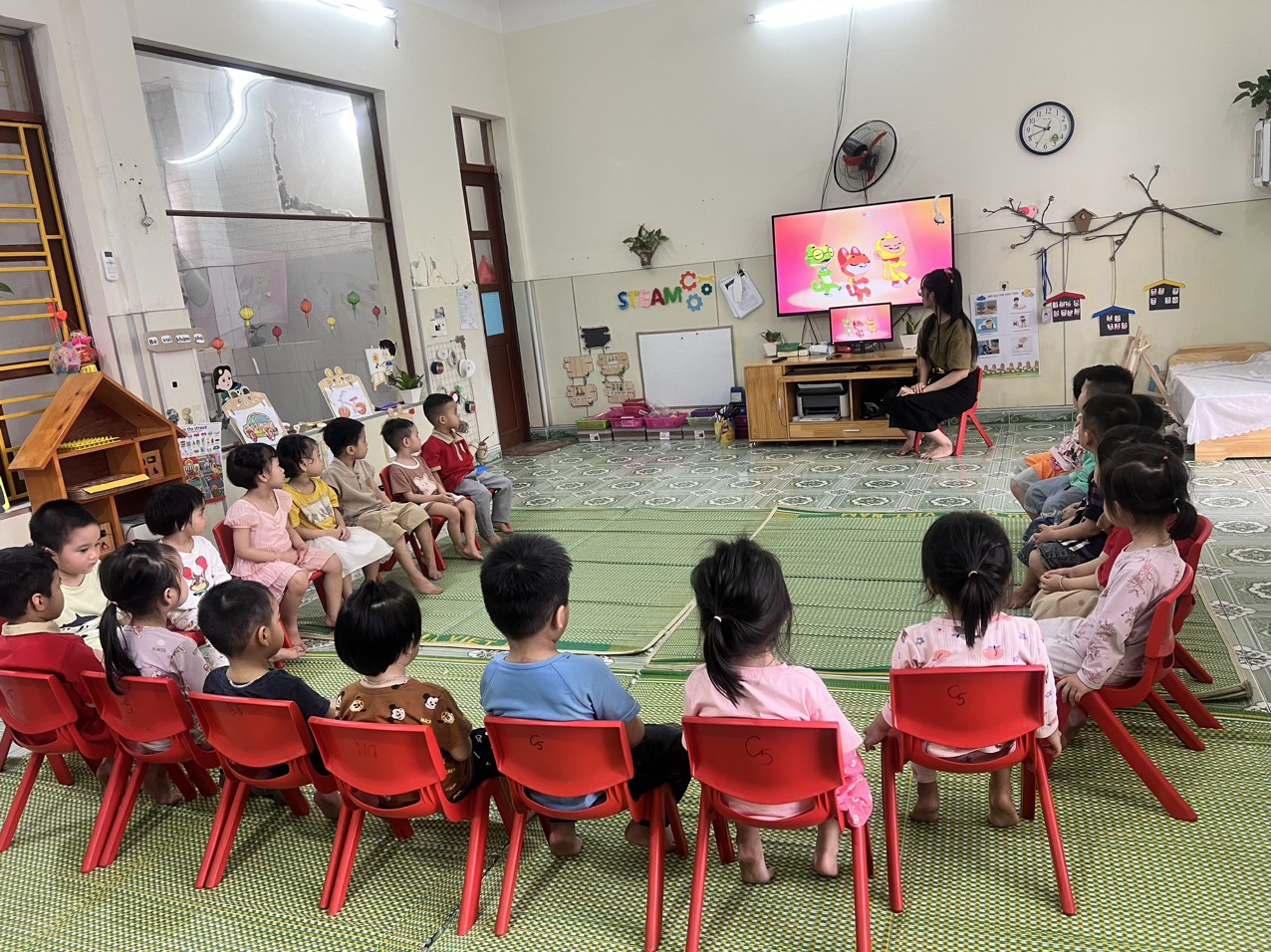 Cô giáo tớ đang mô phỏng tình huống không an tòan khi ngồi xe máy đấy