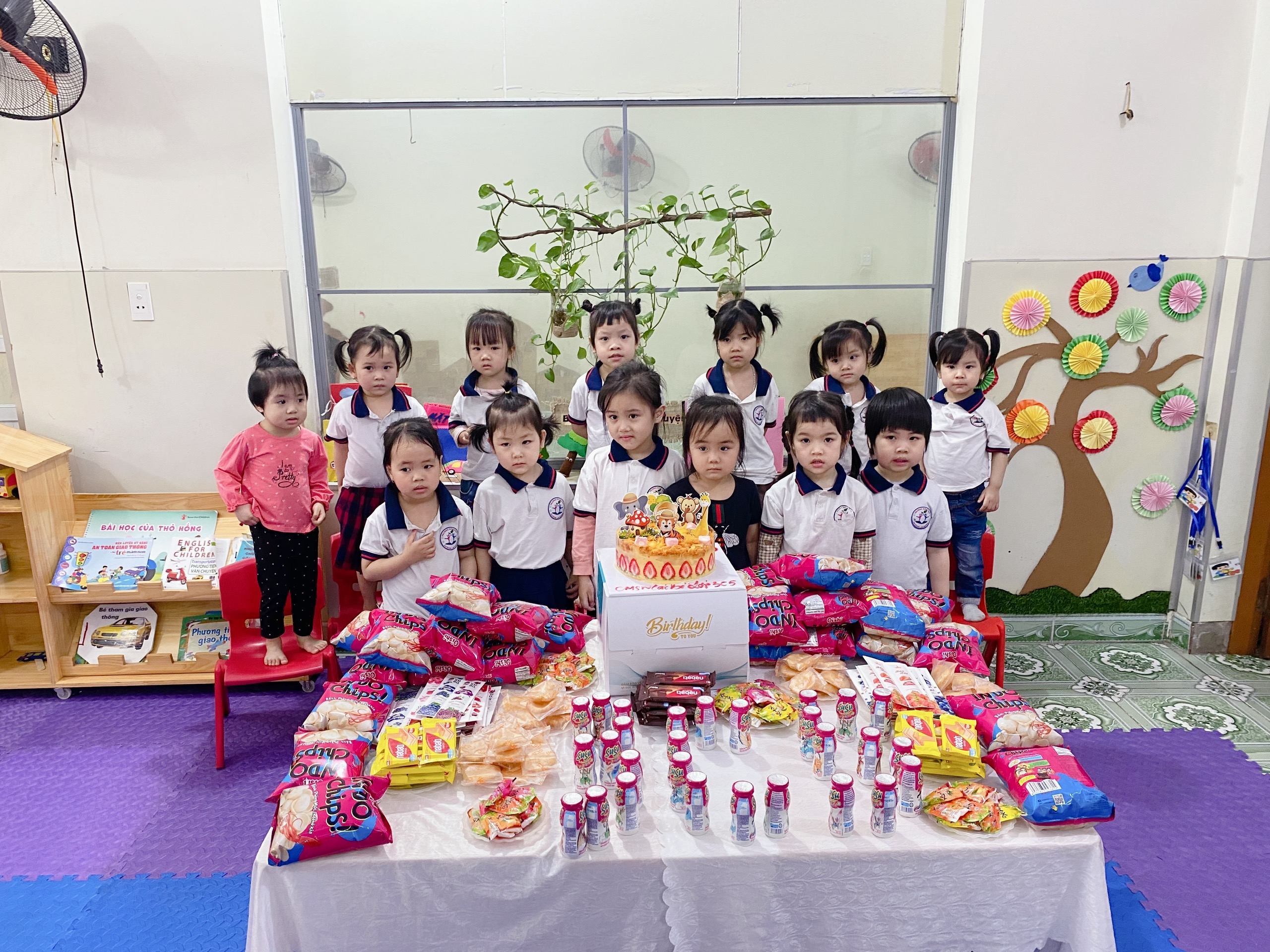 Các cô trang tri tiệc sinh nhật cho chúng tớ đẹp quá