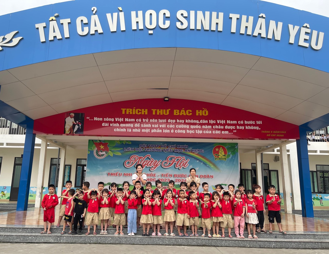 Chính vì nhận thức rõ được tầm quan trọng của việc chuẩn bị tâm thế sẵn sàng cho trẻ 5-6 tuổi vào lớp 1 và cũng để thực hiện tốt nhiệm vụ năm học, thực hiện tốt nội dung chương trình chăm sóc giáo dục trẻ, nội dung “Tổ chức thực hiện các hoạt động giáo dục lấy trẻ làm trung tâm thông qua trải nghiệm với bối cảnh địa phương”. Sáng ngày 19 tháng 4 năm 2024 được sự nhất trí của lãnh đạo UBND xã An Hưng, trường Mầm non An Hưng đã tuyên truyền, phối hợp với Phụ huynh, cùng trường Tiểu học An Hưng tổ chức thành công chuyến tham quan, trải nghiệm cho các con lớp 5A3 tại Trường Tiểu học An Hưng.