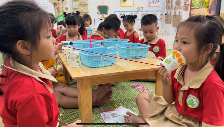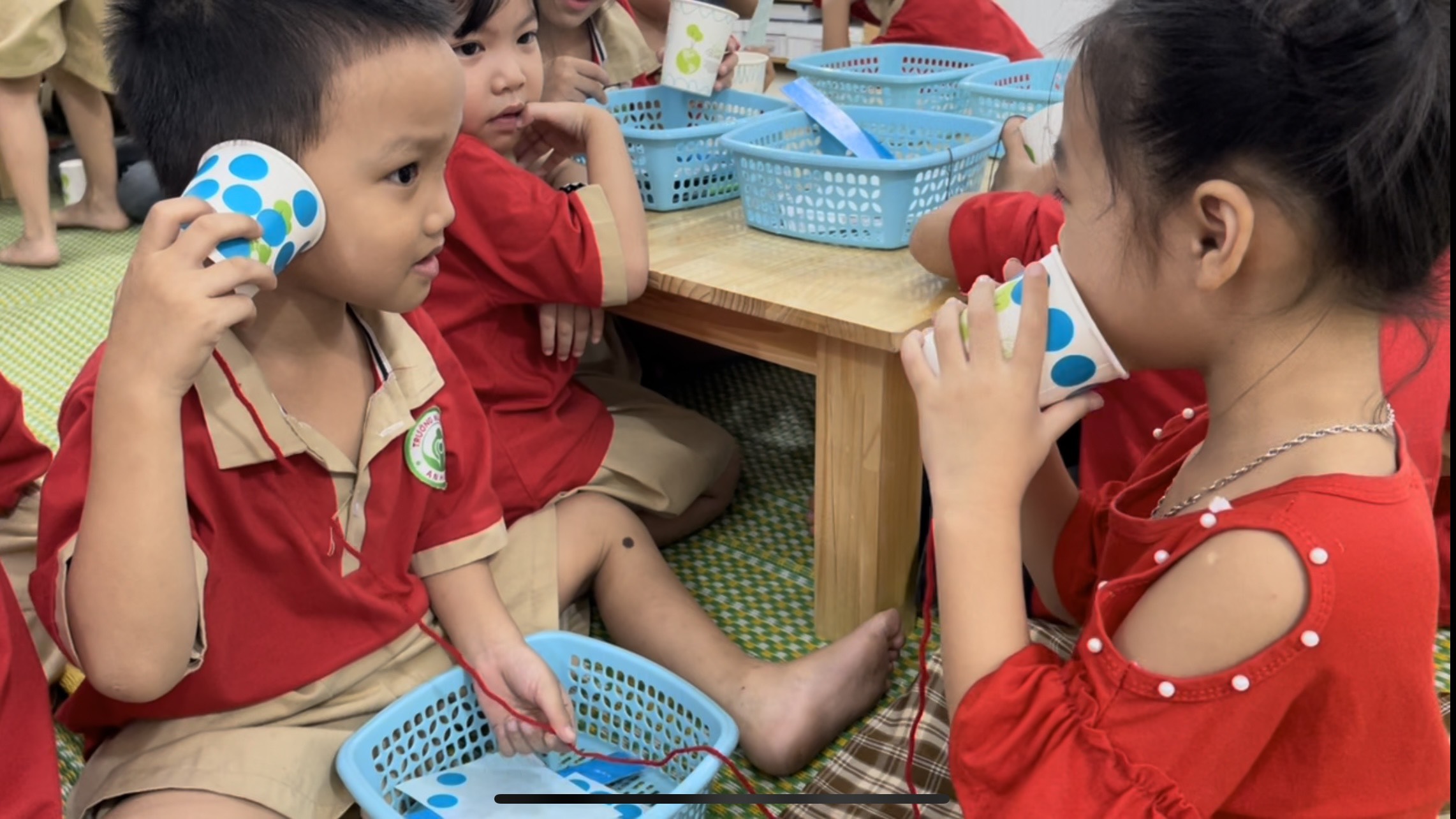 Chỉ với 2 chiếc cốc giấy và 1 sợi dây nối trẻ hoàn toàn có thể tự tạo cho mình 1 chiếc ống dẫn truyền âm thanh vô cùng sáng tạo và thật đơn giản. Thông qua hoạt động này các bạn nhỏ lớp 5A3 đã thành công chế tạo được những chiếc ống dẫn truyền vô cùng đẹp mắt. Mời quý phụ huynh cùng xem hoạt động và thành quả của các con ạ!