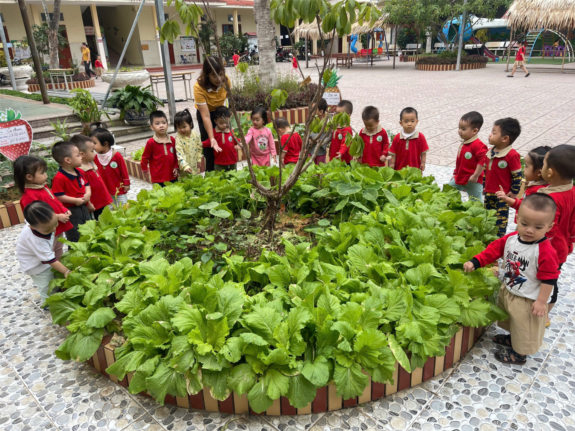 Thông qua các hoạt động ngoài trời trẻ phát huy được tính tích cực chủ động của mình. Đồng thời trẻ có được sự thoải mái dễ chịu khi được ra ngoài hít thở không khí trong lành của thiên nhiên xung quanh trẻ. Trong những giờ hoạt động ngoài trời, dưới sự hướng dẫn của các cô, các bé lớp nhà trẻ luôn có cảm giác gần gũi, như được hòa mình với thiên nhiên. Bên cạnh những trò chơi dung dăng dung dẻ, bật nhảy,… Ngoài ra trẻ được tự do chơi các trò chơi ngoài trời như chơi cầu trượt, xích đu,…ngay tại chính ngôi trường của mình trong không khí trong lành và thân yêu.
