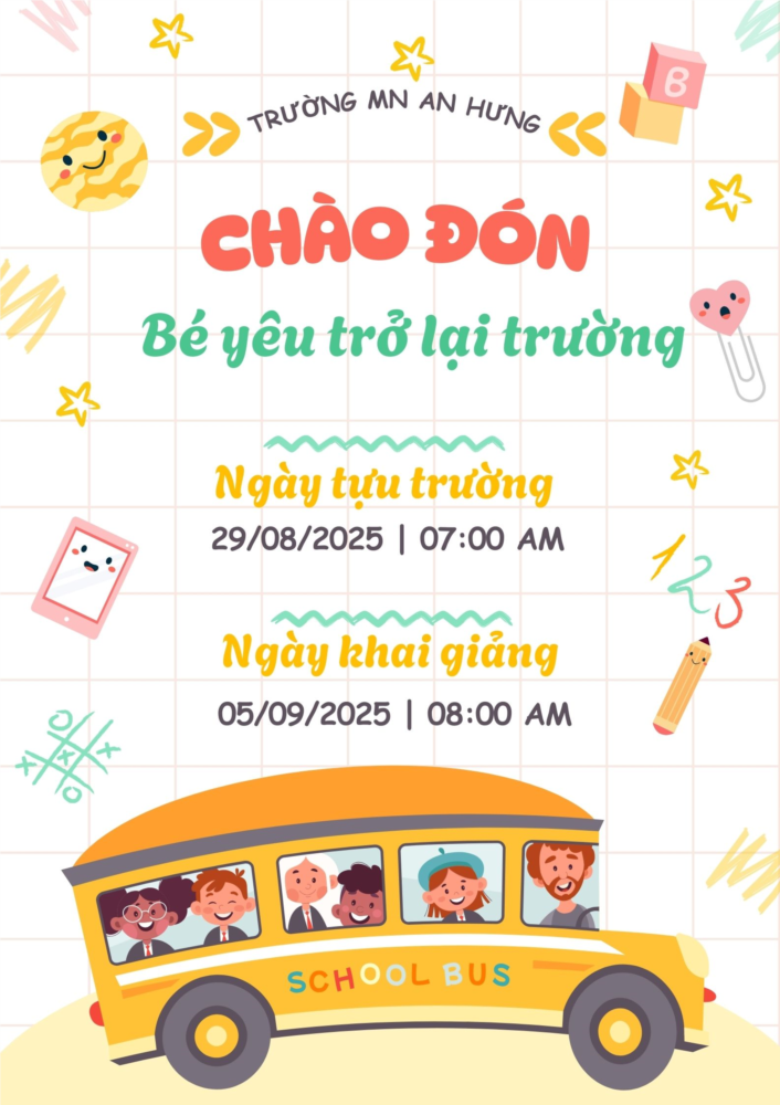 Một hành trình mới đang mở ra – nơi các con được vui chơi, học hỏi, khám phá thế giới trong tình yêu thương và sự chăm sóc tận tâm. Nhà trường kính mong quý phụ huynh sắp xếp thời gian để các con đến trường đúng lịch, đầy đủ, cùng nhau khởi đầu năm học mới với niềm vui – an toàn – nhiều trải nghiệm ý nghĩa.