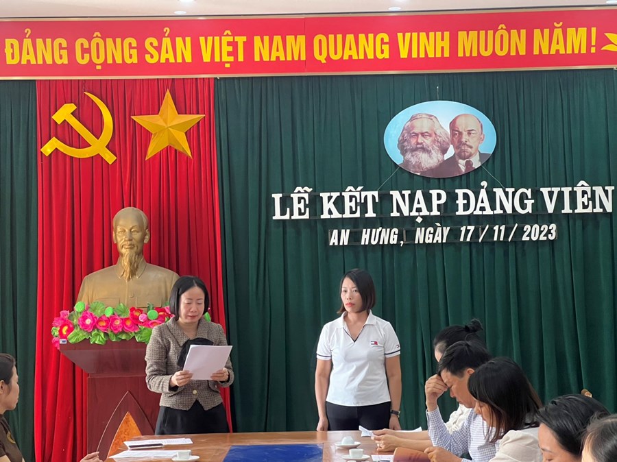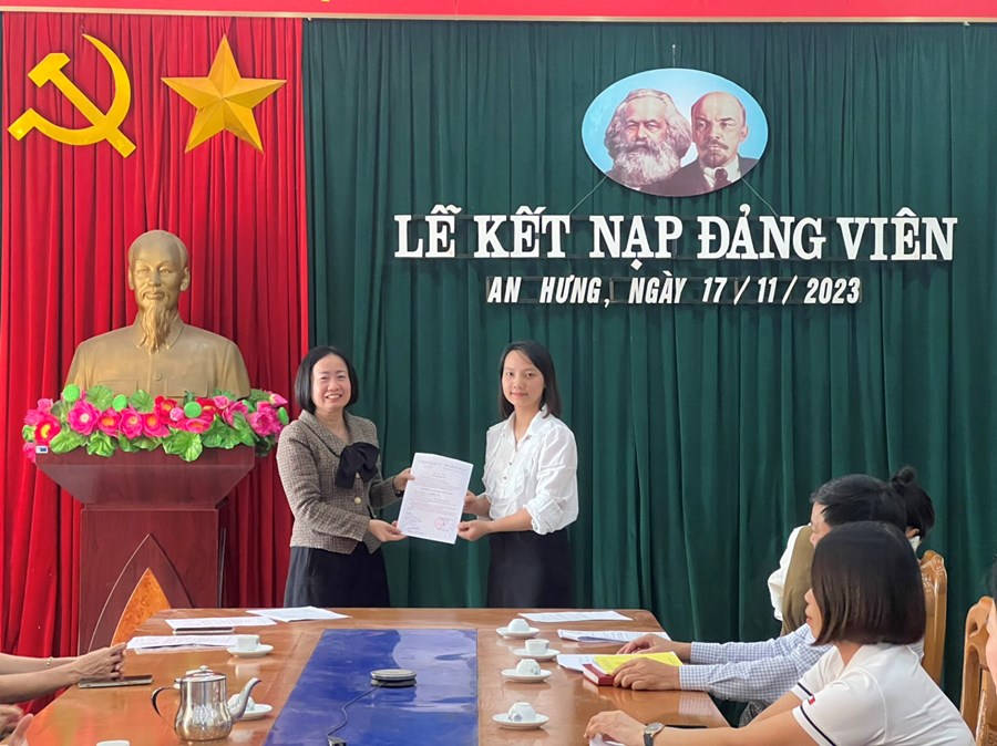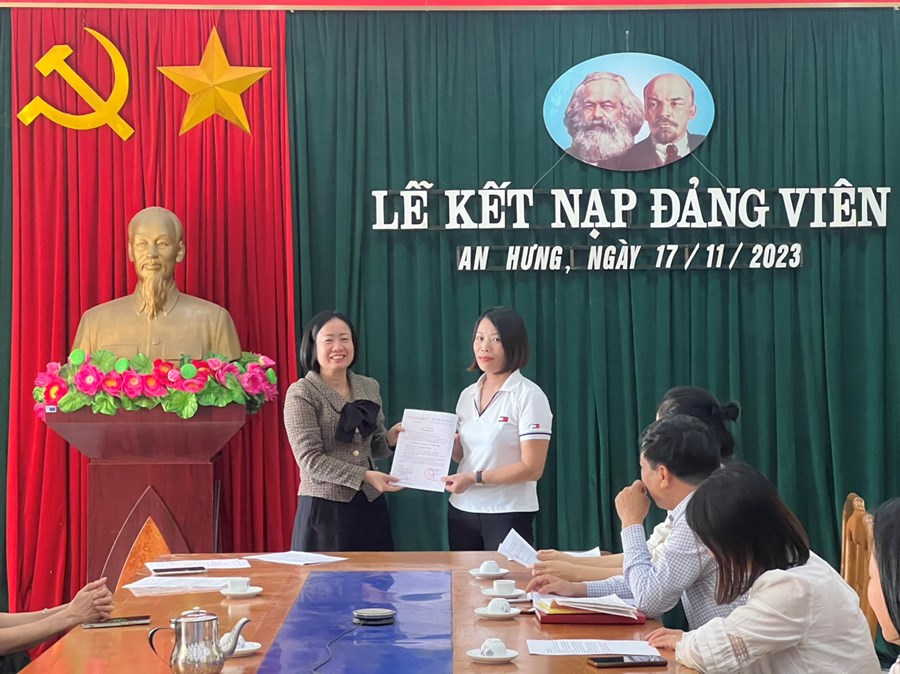 Bồi dưỡng, kết nạp đảng viên mới là nhiệm vụ thường xuyên được Chi bộ Trường mầm non An Hưng rất quan tâm. Việc giáo viên, nhân viên phấn đấu được kết nạp Đảng đã khẳng định sự cố gắng trong học tập, tu dưỡng, rèn luyện của các đồng chí. Đây chính là những tấm gương sáng để các giáo viên, nhân viên trẻ của trường mầm non An Hưng tiếp tục noi theo.