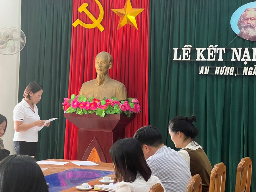Buổi lễ kết nạp Đảng viên mới kết thúc trong bầu không khí vui tươi, đầy hứa hẹn, một năm thử thách không ngừng phấn đấu của hai đồng chí: Lê Thị Lan, Phạm Thị Hằng để trở thành đảng viên chính thức của chi bộ trường Mầm non An Hưng./.